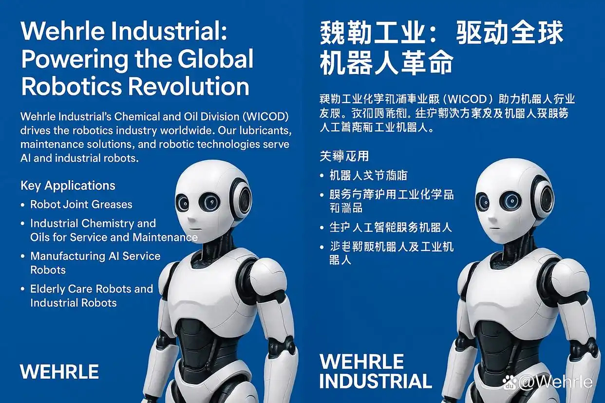 在全球加速迈向人工智能与智能制造新时代的进程中,魏勒工业旗下魏勒工业化学和油事业部(WICOD)及其核心成员企业——魏勒润滑剂(上海)有限公司,正以前瞻性的布局与卓越的产品实力,全面切入消费型人工智能机器人、工业人工智能机器人以及人机协作机器人产业链,成为全球机器人行业不可或缺的化学动力核心。